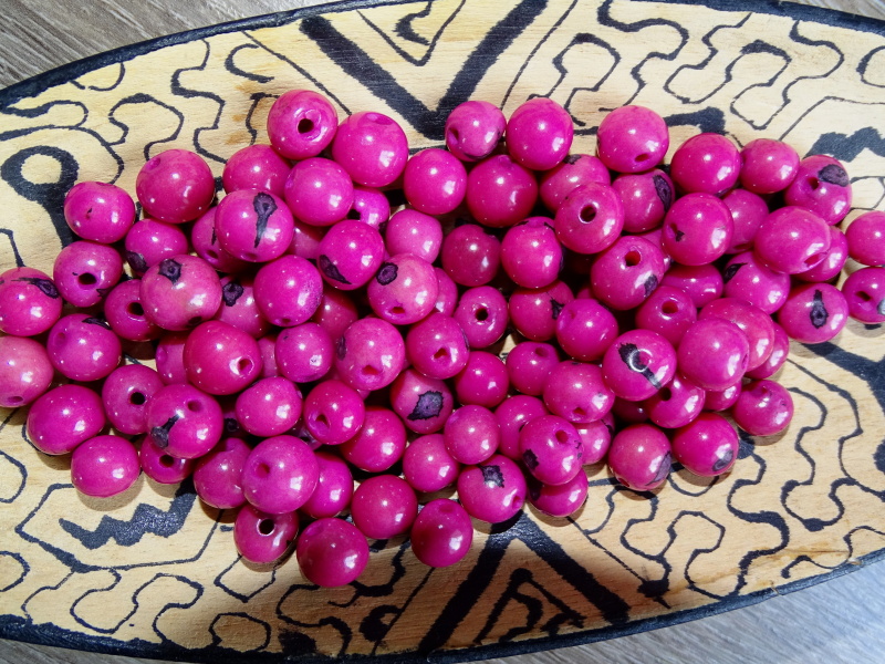 Korálek acai ze semene palmy Euterpe Oleracea, perforované, s přírodní kresbou.