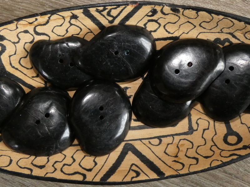 Výrazný knoflík z velké placky tagua, řez ořechu z palmy zvané slonovník (přírodní slonovina), perforovaný 2 dírkami, s přírodní kresbou.
