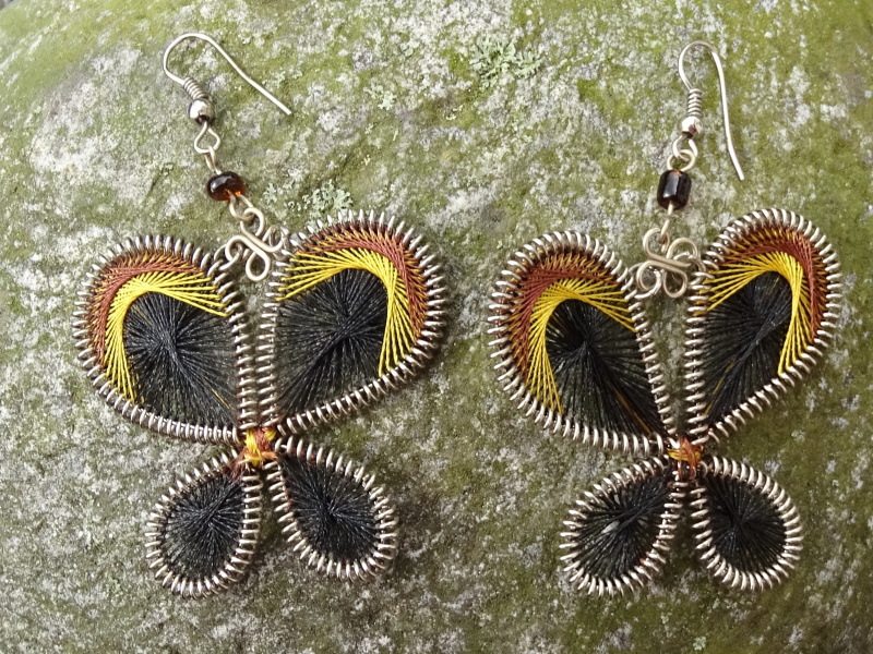 Barevné náušnice vyplétané zářivými nitkami.