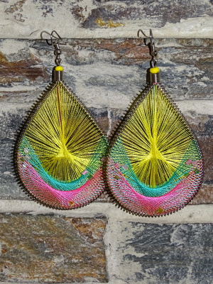 Barevné náušnice vyplétané zářivými nitkami.