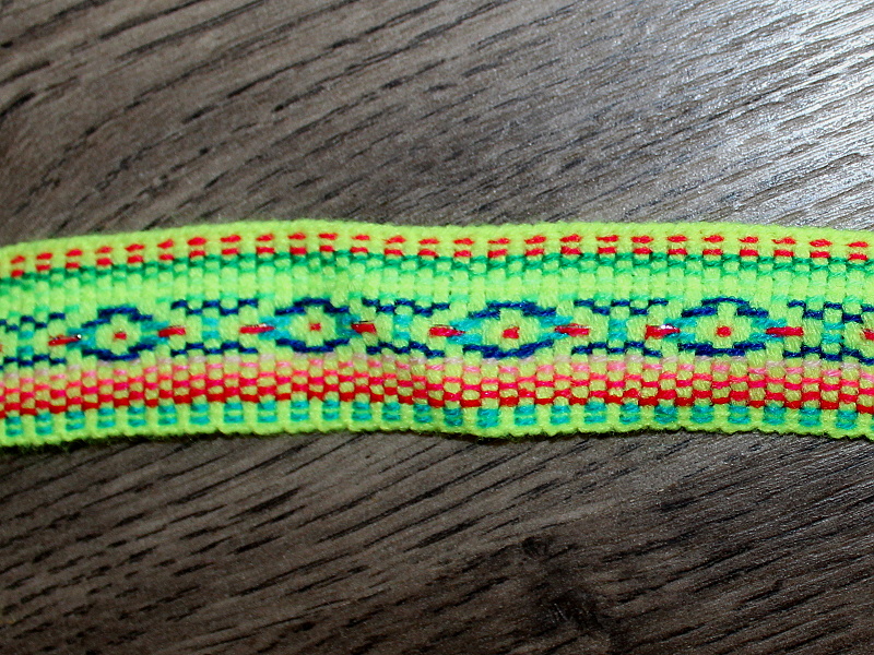 Tenký pásek s nádherným vzorem, použitelný jako lem nebo jako popruh.