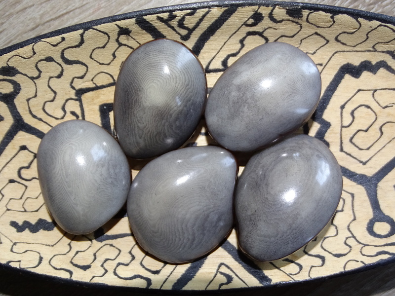 Velká maxičočka tagua, semeno z palmy zvané slonovník (přírodní slonovina), perforovaný (skrz v horní části), s přírodní kresbou na boku.