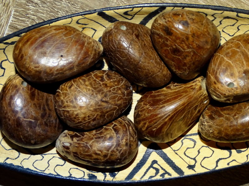 Velký maxikorálek tagua, semeno z palmy zvané slonovník (přírodní slonovina), perforovaný, s přírodní kresbou.