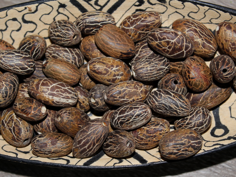 Semena zvaná visola, perforovaná, s přírodní kresbou a původní ohlazenou slupkou.