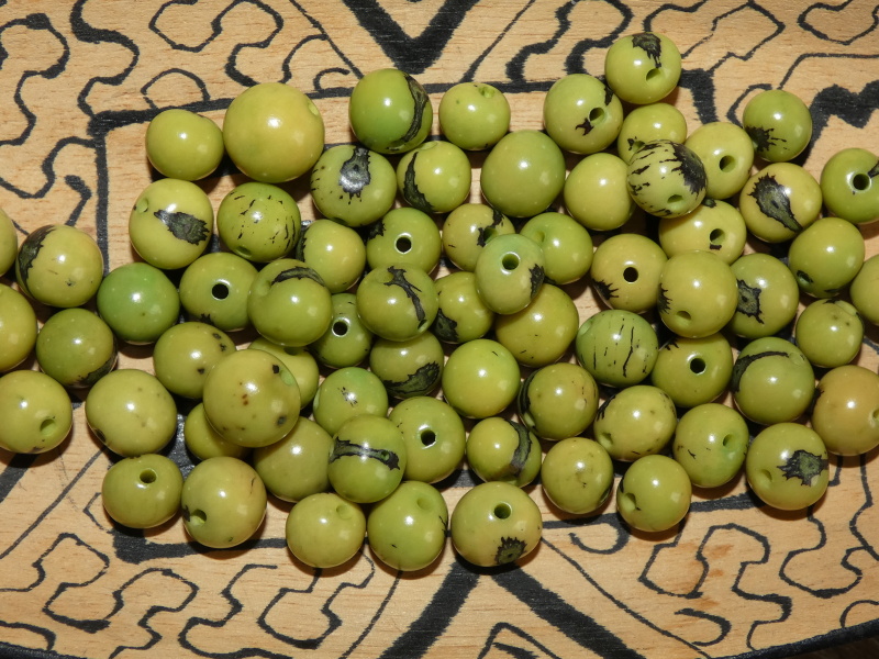 Korálek acai ze semene palmy Euterpe Oleracea, perforované, s přírodní kresbou.
