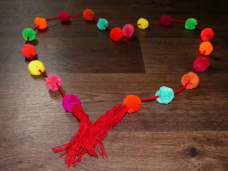 Rozměry: 20 bambulek - šířka3 cm x délka 140 cm + 13 a 13 cm střapce