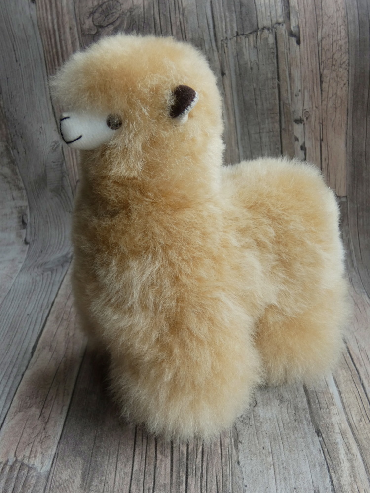 Extrémně heboučká lama z lamí vlny, vycpaná jako plyšák.