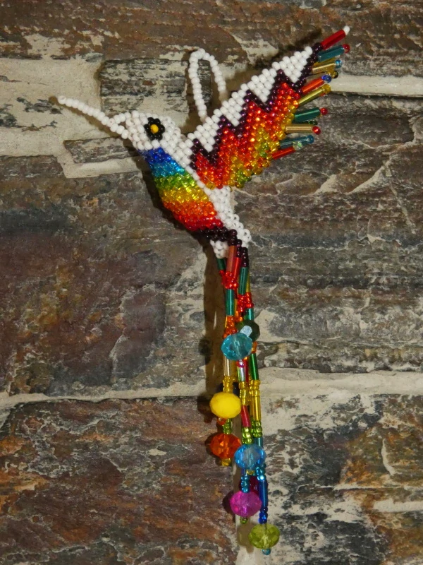 Kolibřík z korálků, překrásné provedení, barevný a zářivý. Očko k zavěšení (na okno, na batoh, na kabelku, kdekoli doma). Když ho dáte na sluníčko nebo pod lustr, úplně se rozzáří:-)