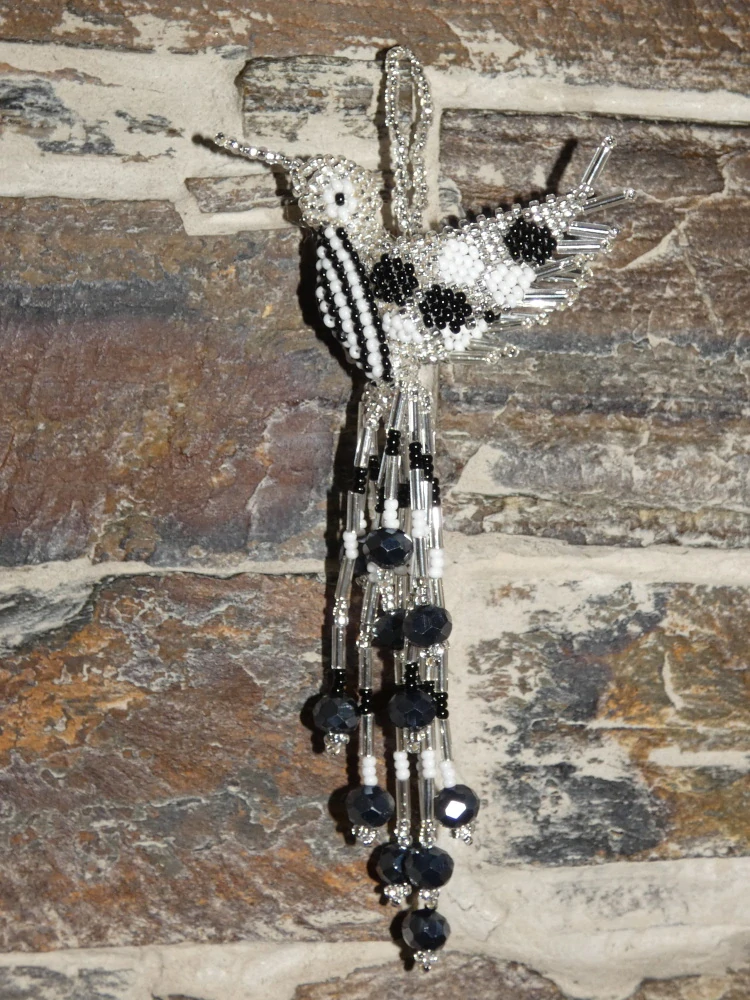 Kolibřík z korálků, překrásné provedení, barevný a zářivý. Očko k zavěšení (na okno, na batoh, na kabelku, kdekoli doma). Když ho dáte na sluníčko nebo pod lustr, úplně se rozzáří:-)