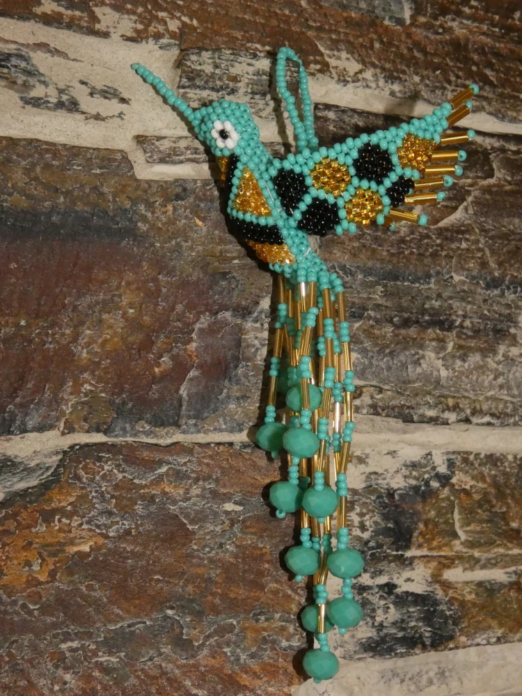 Kolibřík z korálků, překrásné provedení, barevný a zářivý. Očko k zavěšení (na okno, na batoh, na kabelku, kdekoli doma). Když ho dáte na sluníčko nebo pod lustr, úplně se rozzáří:-)