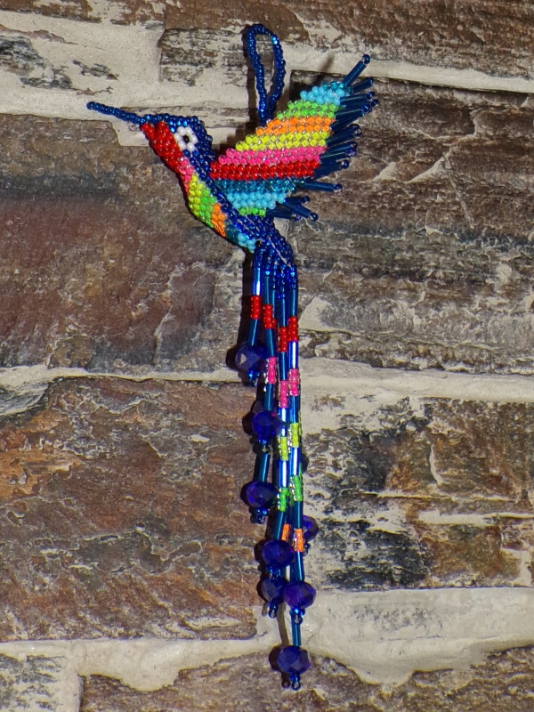 Kolibřík z korálků, překrásné provedení, barevný a zářivý. Očko k zavěšení (na okno, na batoh, na kabelku, kdekoli doma). Když ho dáte na sluníčko nebo pod lustr, úplně se rozzáří:-)