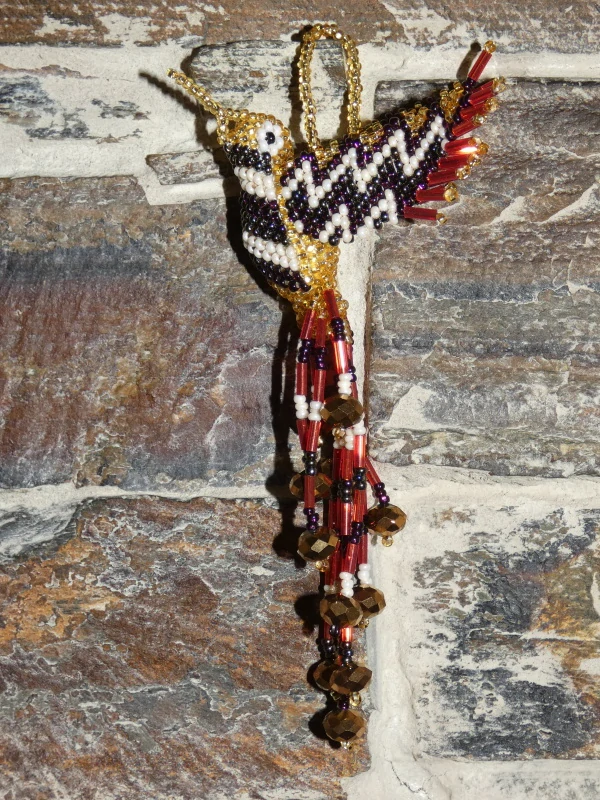Kolibřík z korálků, překrásné provedení, barevný a zářivý. Očko k zavěšení (na okno, na batoh, na kabelku, kdekoli doma). Když ho dáte na sluníčko nebo pod lustr, úplně se rozzáří:-)