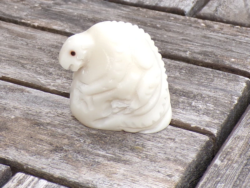 Originální vyřezávaný leguán ze semene tagua z palmy zvané slonovník (přírodní slonovina).