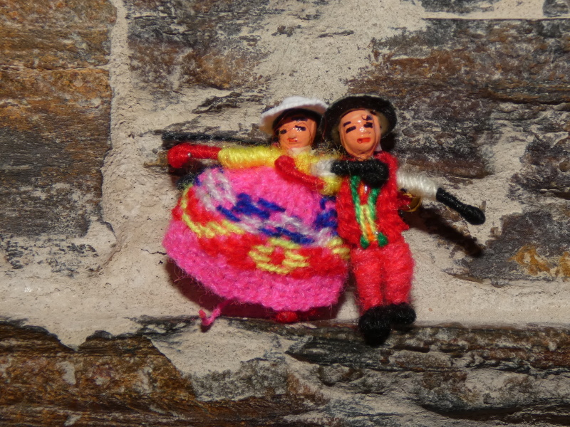 Minibrož ve tvaru peruánských indiánů, ozdobené peruánskou látkou, spínací špendlík. Různé barevné kombinace, barvy se tedy mohou lišit od fotky.