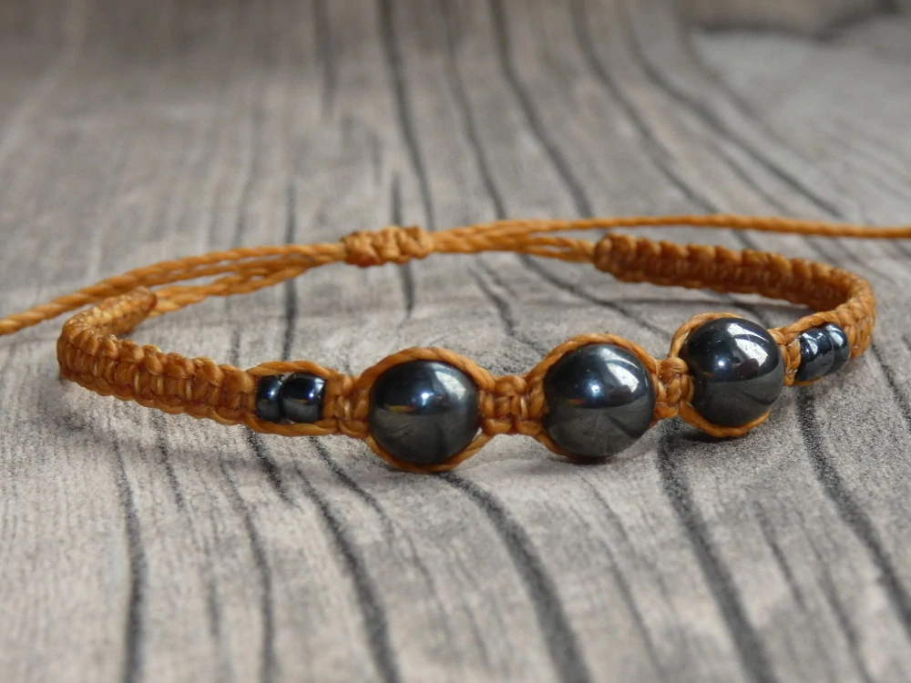 Macrame náramek s hematitem.
