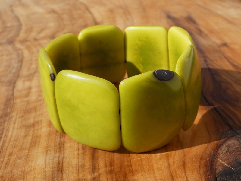 Barevný náramek ze semen tagua (přírodní slonovina), krásně sedí na ruce, netlačí, na omak velmi příjemný materiál, zářivá barva s přírodní kresbou.