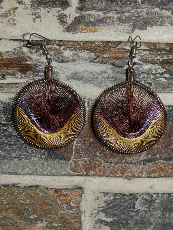 Barevné náušnice vyplétané zářivými nitkami.