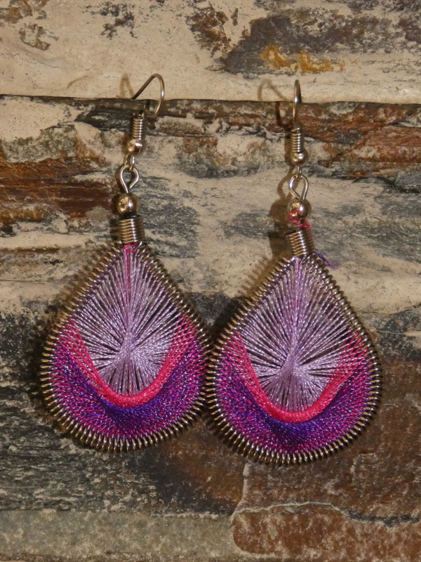 Barevné náušnice vyplétané zářivými nitkami.