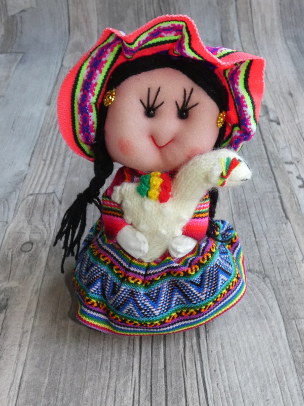 Krásná ručně dělaná peruánská panenka, indiánka v tradičním oděvu.