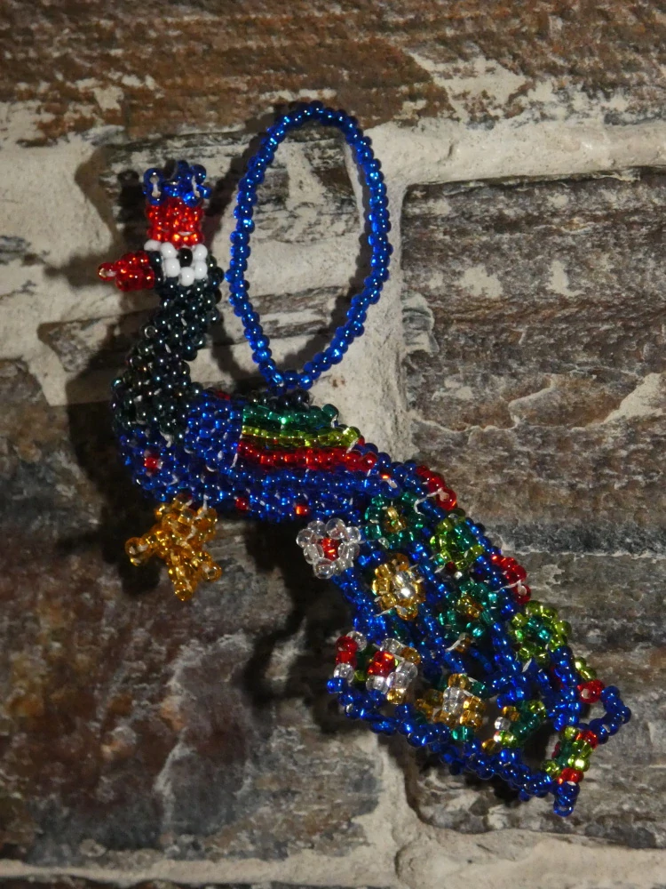 Páv z korálků, překrásné provedení, barevný a zářivý.