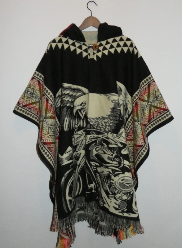 Pončo (lamí vlna, Ekvádor, černé, orel)