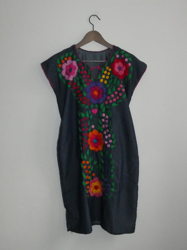 Nádherné vyšívané šaty z Chiapasu, volné, vzdušné, krásná výšivka v zářivých barvách.