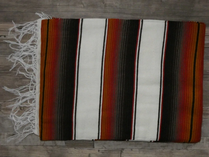 Velké mexické serape, použitelné jako přehoz, deka nebo ubrus.
