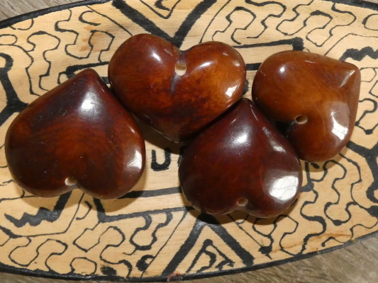Překrásné buclaté srdíčko tagua ze semene palmy zvané slonovník (přírodní slonovina), perforované.