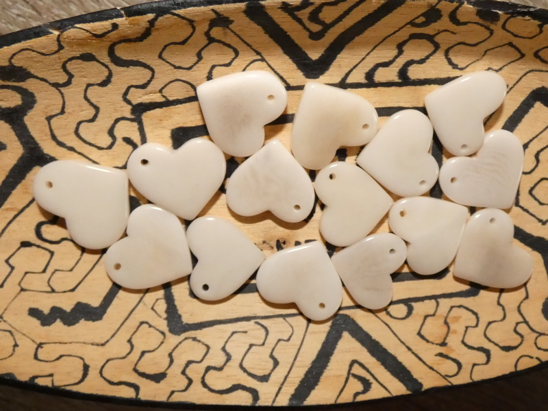Krásné srdíčko tagua ze semene palmy zvané slonovník (přírodní slonovina), perforované asymetricky.