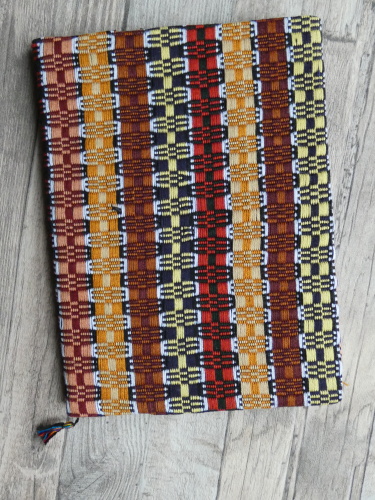 Zápisník A5 potažený guatemalskou látkou, uvnitř linkovaný, vyměnitelný sešit.